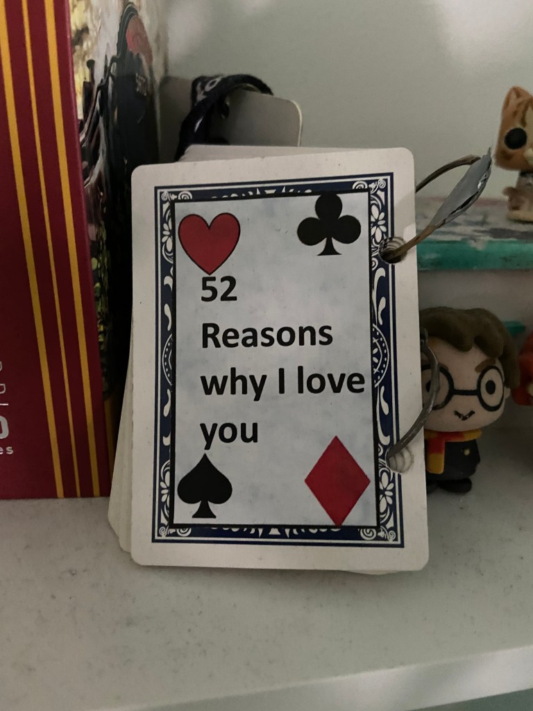 Sweet, thoughtful, easy to make and destined to bring a tear to your loved one’s eye, or at least the biggest smile ever. All you need to make this is a deck of cards and your partner in mind because … you guessed it. All you need to do is write one of the reasons you love them on each card in the deck. It’s a simple gift, but so easy to show how much you adore and care for your partner and it won’t take you longer than an hour to make. You could print out your reasons on the computer and then stick them onto your deck of cards, write your reasons directly onto the cards or use a printable. No matter which way you choose to make them, there is no way your partner won’t be able to see how much you love them when you hand over this gift. My boyfriend made one of these for me for Valentine’s Day last year, and it did bring tears to my eyes. Now it sits on my bedside table, and it makes me smile every time I page through it. Everyone loves hearing why you love them, and this gift can remind them over and over again.