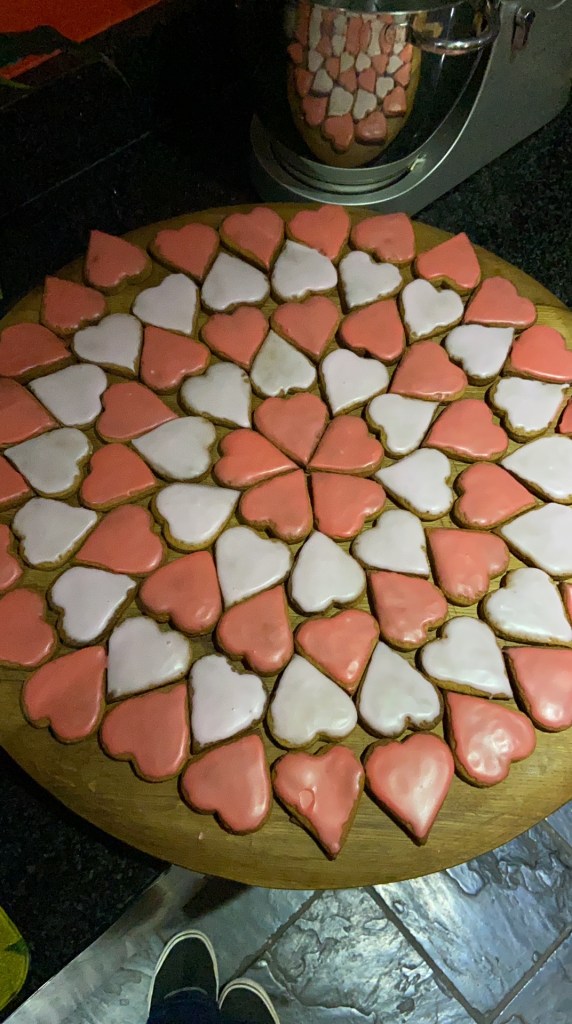 There are very few baked goods that I can make regularly and still love so much. Gingerbread happens to be one of them. One of my standard orders is to make shaped gingerbread for different events, and so seeing as this is a romantic weekend, I had to make 100 heart-shaped gingerbread biscuits to brighten up hospital waiting rooms. Gingerbread may tend to match up with Christmas as a holiday, but that spicy sweetness is so irresistible that you can enjoy it all year round. So, if you require cookies on Valentine’s day, why not go with gingerbread? A little sugar and spice may be just what you need.