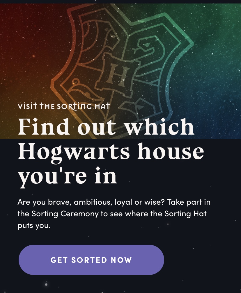 Get sorted into a Hogwarts house on Pottermore (now called Wizarding World)