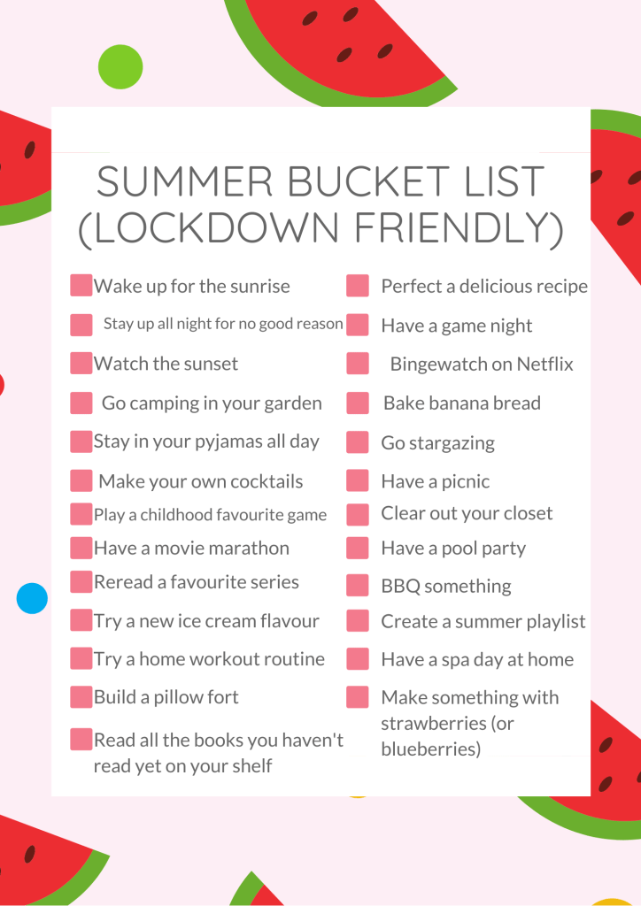 Summer Bucket List (lockdown friendly edition)