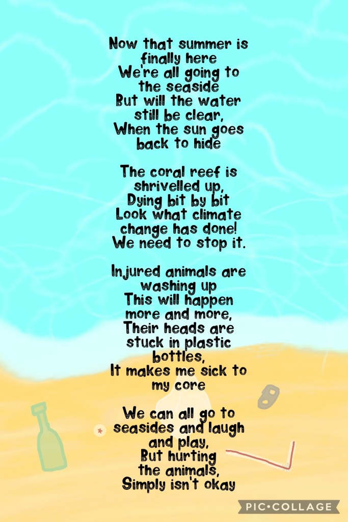 Today’s showcase piece is another poem, but with two themes. Not only does it have a summer theme, as per the rules of the competition, but it also has a sustainability/environmental awareness theme, which is something I am incredibly passionate about. This entry is by Project Eco, a blog covering all wonderful eco-friendly topics and crafts. I hope you enjoy it!