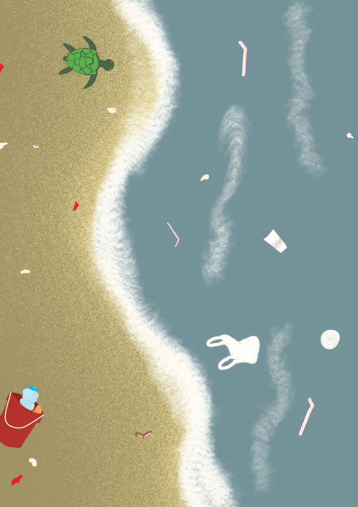 This piece of art was submitted by Project Eco, as I’m sure you might have guessed by the theme. Not only is it summery (the beach always brings summer to my mind), but it also holds the important message of environmental sustainability and the impact we humans have on the environment.