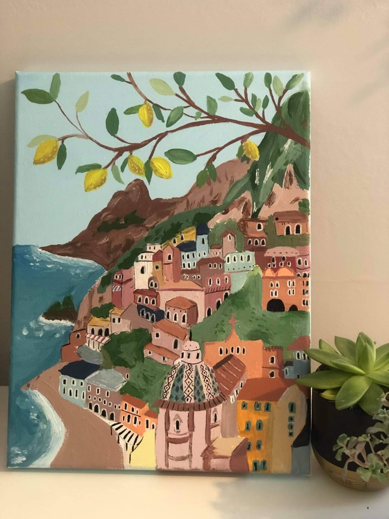 This first painting is from Elena, a lovely depiction of the amalfi coast in Italy.