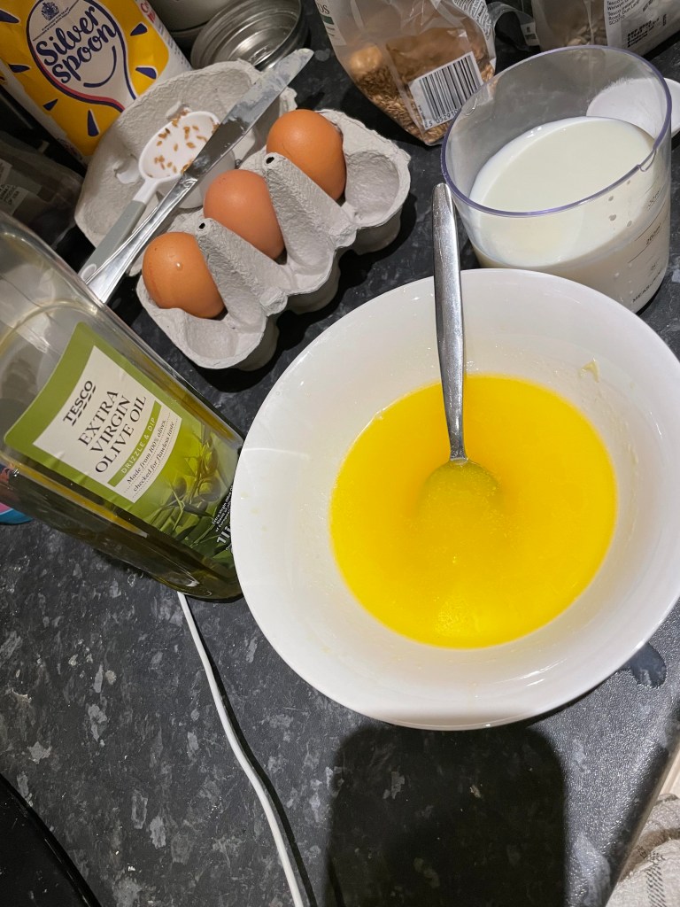 • Empty the mixture into a rectangular baking tin/cake pan that you’ve lined with baking paper. Gently smooth it over so it is spread into all the corners.